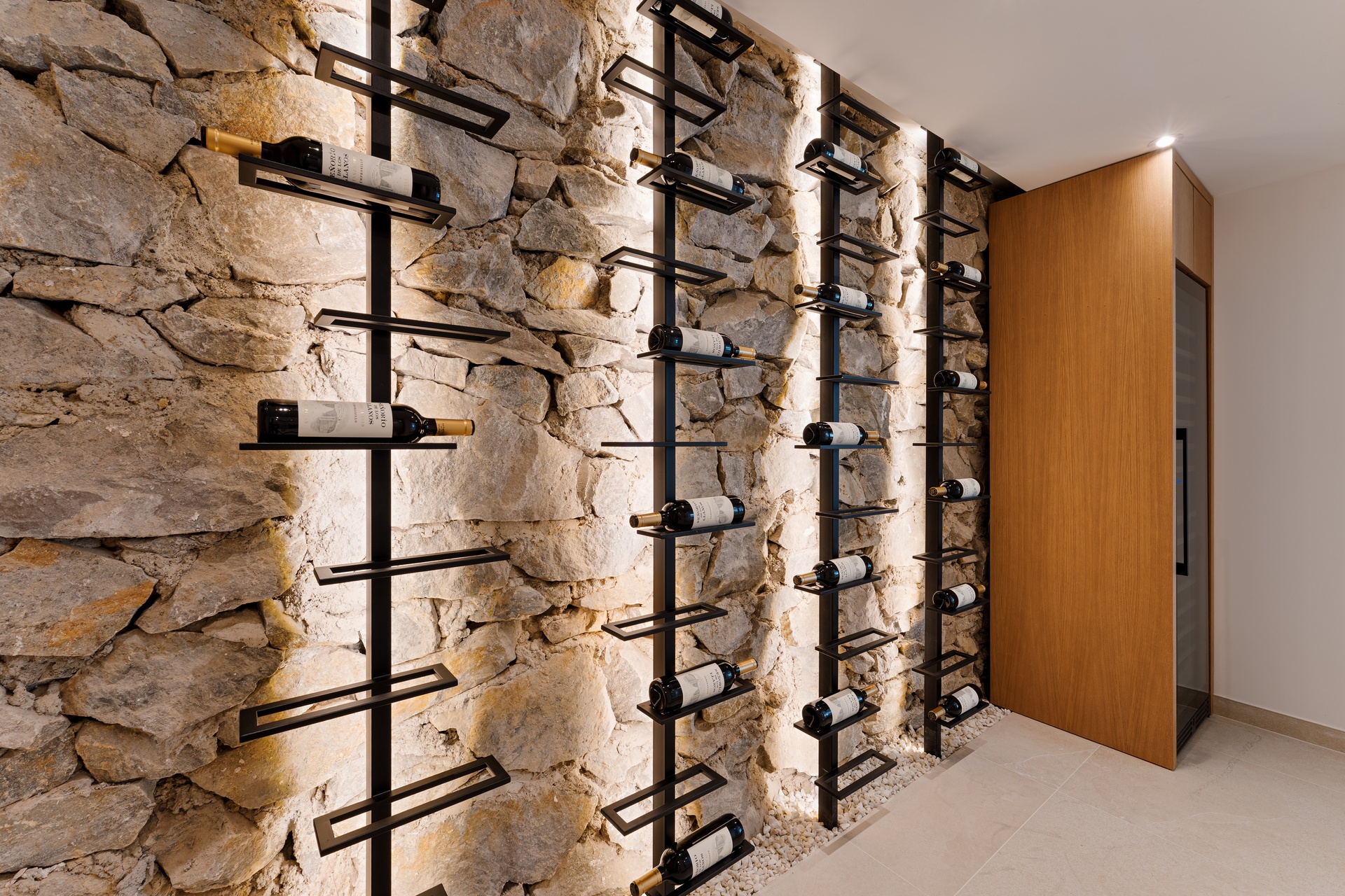 Villa Zéphire destaca por su elegante arquitectura mediterránea contemporánea. Los interiores luminosos se abren hacia amplias terrazas y zonas de descanso al aire libre, creando una conexión fluida con el entorno natural. Las líneas limpias, los materiales nobles y la paleta neutra refuerzan el equilibrio entre elegancia y confort moderno. El salón con chimenea se une al comedor y a la cocina de diseño, creando un ambiente ideal para el día a día o para recibir invitados.