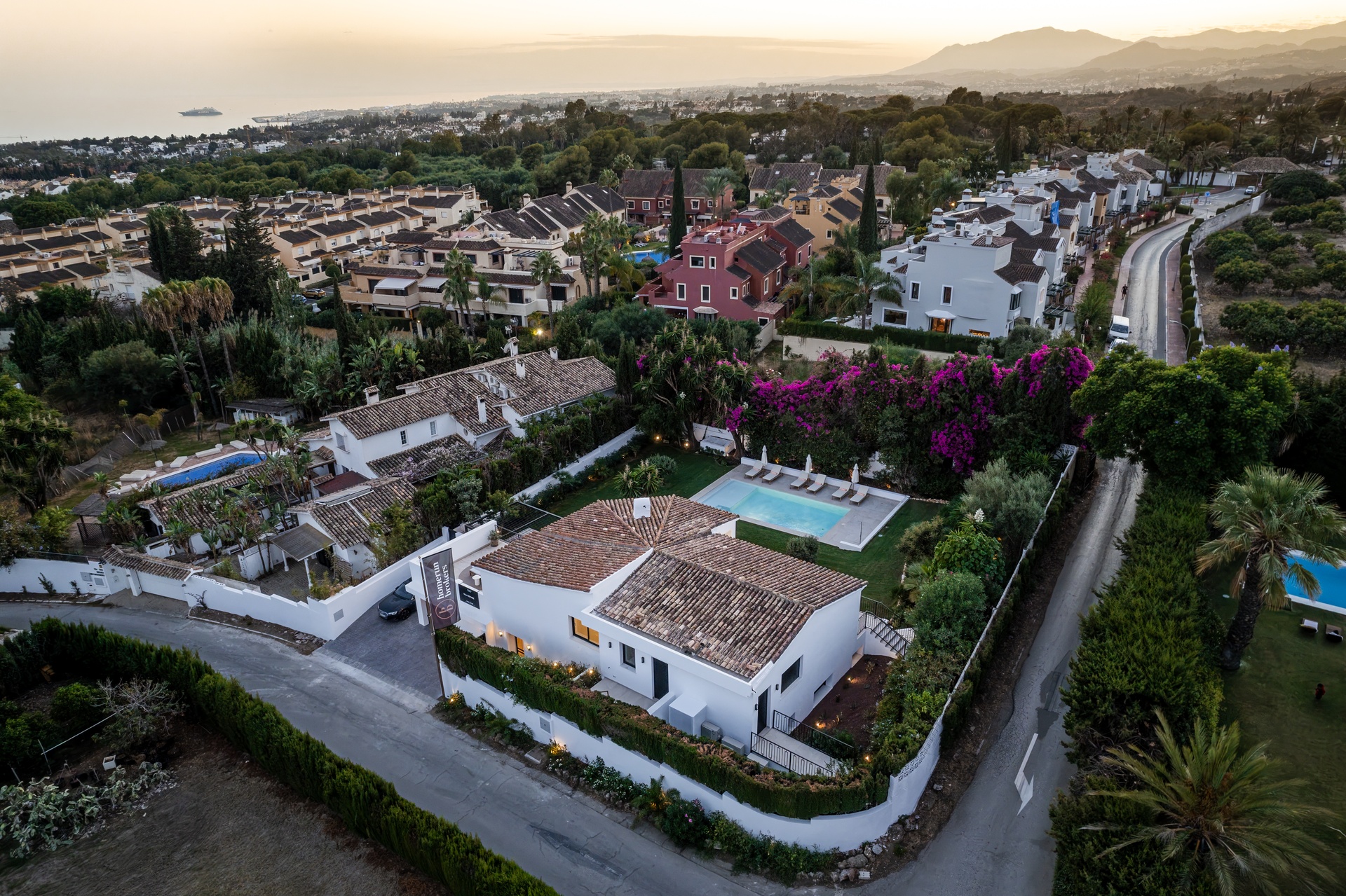 Rocío de Nagüeles es una de las zonas residenciales más exclusivas de Marbella, situada entre el centro de la ciudad y la Milla de Oro, a los pies de la icónica montaña La Concha. La zona combina privacidad y proximidad, con fácil acceso a Puerto Banús, clubes de playa, restaurantes gourmet, boutiques de lujo y colegios internacionales. Su ubicación estratégica la convierte en un enclave perfecto tanto para vivir todo el año como para disfrutar de estancias de lujo.