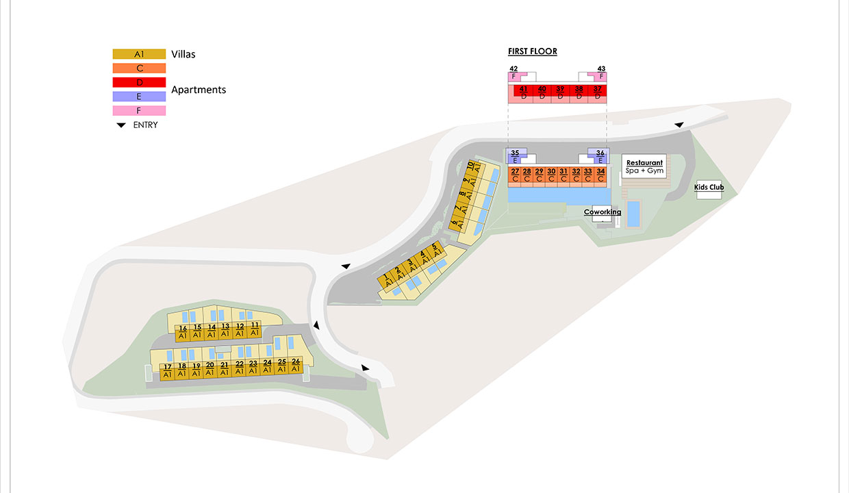 Villas Sencillas (Unidades de 256 a 265 m2) o Villas Dobles (Unidades de 512 a 530 m2)
